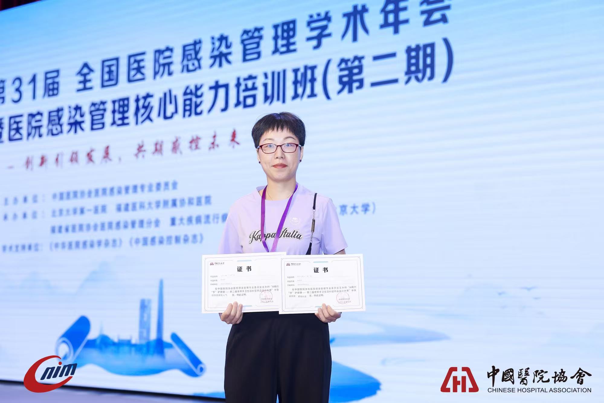 9月4日至8日,中国医院协会第31届全国医院感染管理学术年会在福州举行。我院院感科林海燕制作的参赛视频《洗手以猪八“借”鉴》从全国各级医疗机构选送的400份优秀作品中脱颖而出,荣获第二届“AI助力‘手’护健康”世界手卫生日宣传视频大赛“最佳创意奖”和“最佳人气奖”。