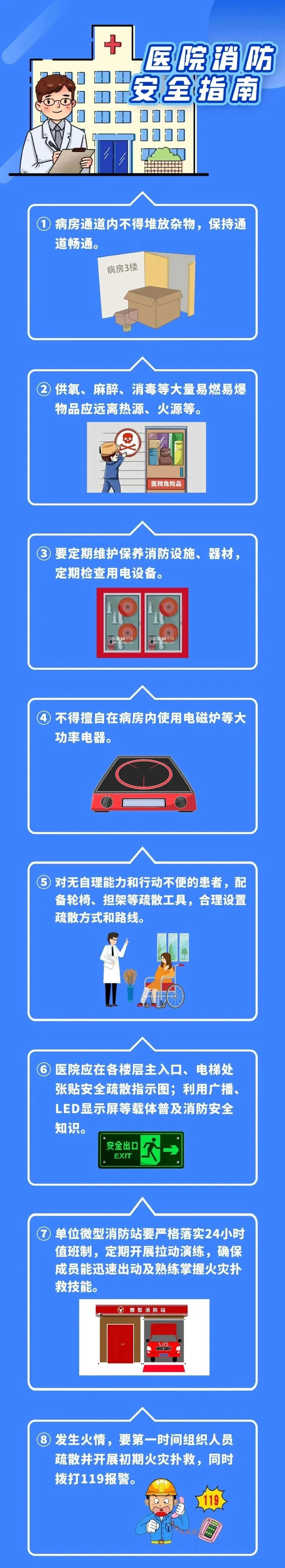 医院有哪些重点防火位置?如何预防医院起火?在医院遭遇火灾如何自救?下图的消防安全知识希望你用不上但一定要知道!