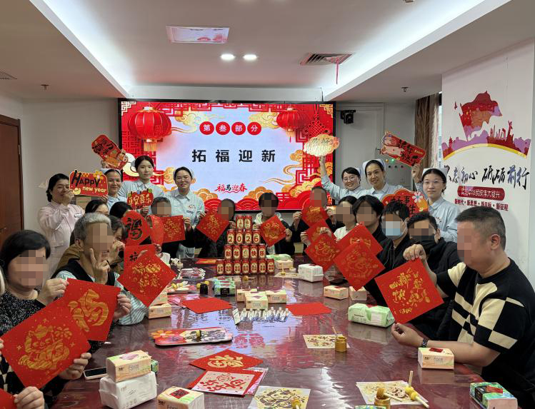 活动现场,医护团队与患者及家属围坐一堂,氛围温馨融洽。活动设置拓福字、送福卡、健康问答、暖心慰问等环节,一笔一划写福运,一纸一墨祈安康,寄托“肝净平安、胆气充盈、胰路顺遂”的美好祝愿。春节健康宣教互动中,医护人员围绕肿瘤康复、饮食调理、用药安全、术后护理等内容开展科普宣教,患者及家属踊跃参与,在轻松氛围中学习实用健康知识,进一步拉近了医患距离。